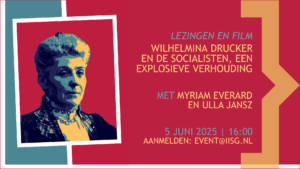Naast de vertoning van de film Wilhelmina Drucker: de geboorte van een feministe van Pieter Kiewiet de Jonge, geeft Myriam Everard een lezing over de strategische manier waarop Wilhelmina Drucker de socialisten betrok bij haar persoonlijke strijd tegen het kapitaal. Ulla Jansz vertelt waar het hardnekkige beeld van Drucker als ‘burgerlijk feministe’ vandaan komt. Meer informatie over de middag en de sprekers is te vinden op de website van het IISG. U kunt zich aanmelden via event@iisg.nl.