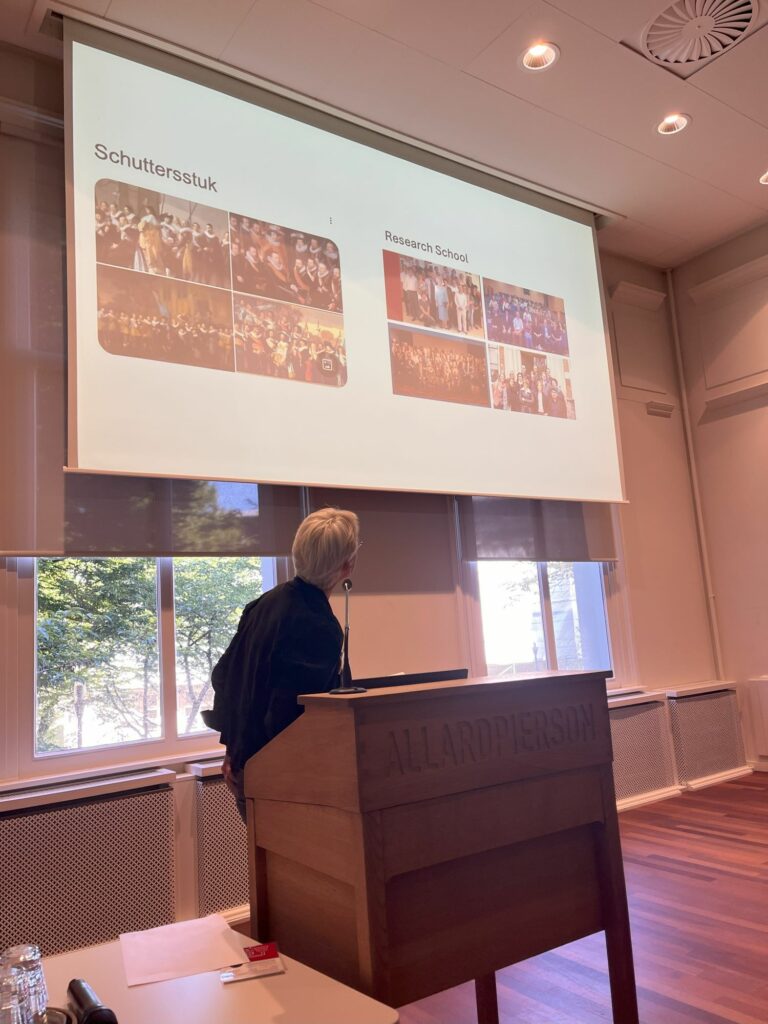 The opening also marked a special farewell to Margit van der Steen and Henk te Velde, who both played a vital role in the development of the OPG. Marijke van Faassen offered a playful presentation that connected interpretations of hand gestures in early modern paintings to photographs of Margit and Henk taken during OPG events—although the exact meanings were sometimes open to debate.